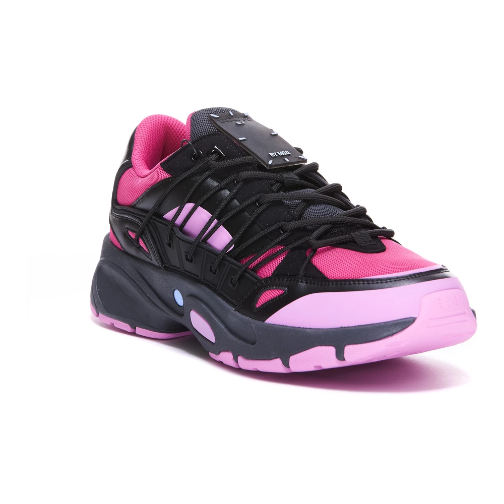 Black and Pink `ICO Aratana` joggesko fra MCQ, ‘Nei. 0 `samling. Denne snøremodellen er laget av lær og nettoverlegg, og sitter på en rosa og svart gummisåle og har logo-lapper.