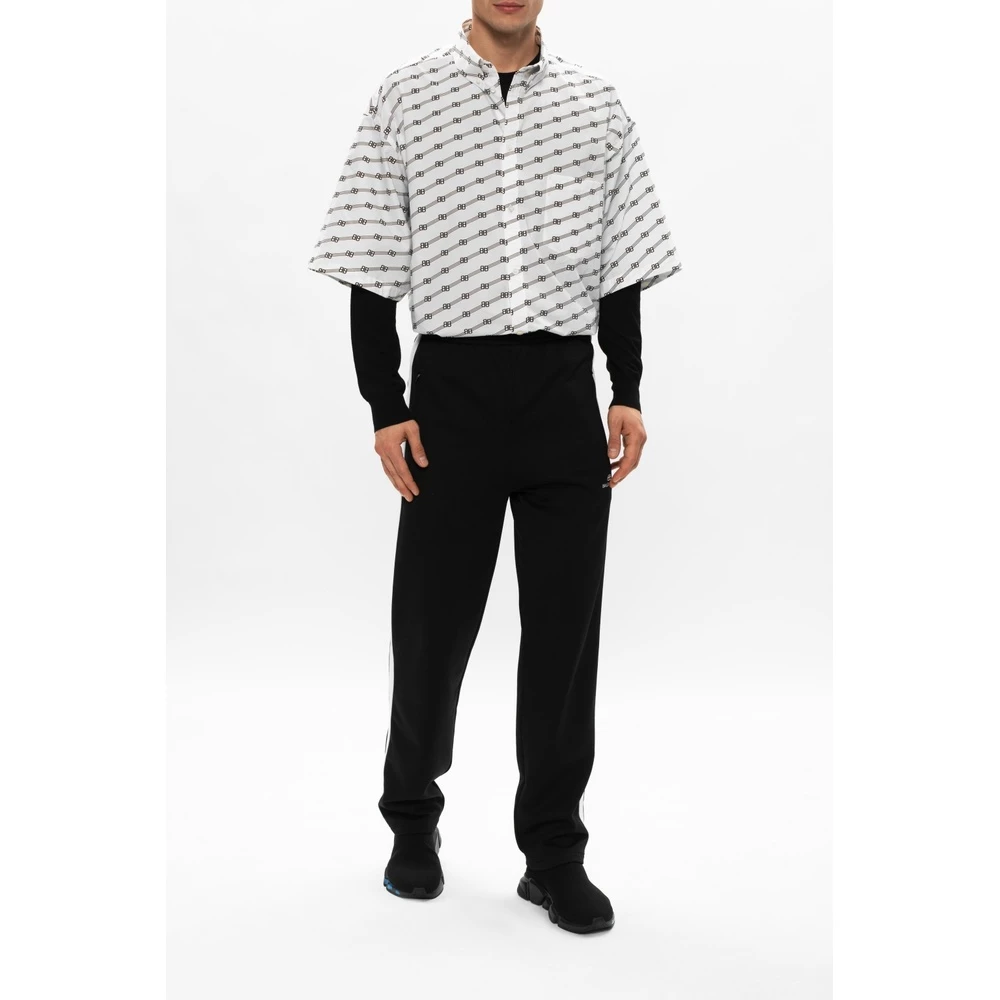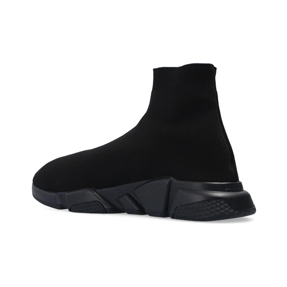 Black ‘Speed’ sneakers fra Balenciaga. Med stretch strikke øvre med sokk-lignende krage. Blå logo print på den svarte gummisåle.