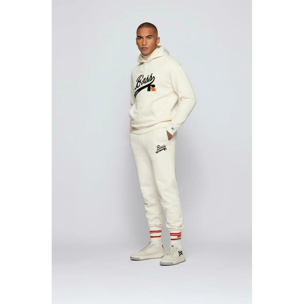 Utmerkede joggesko fra BOSS, detaljert med en spesiell logo der begge merkene er behandlet for et eksklusivt preg. Disse lave joggeskoene er utstyrt med en allsidig, gummiert yttersåle og en topp av skinn og semsket skinn for en luksuriøs effekt. Fôret av frotté gir pustende komfort ved hvert trinn. Boss X Russell Athletic Capsule Collection kombinerer karakteristisk stil og dyktig håndverk med utseendet til et amerikansk Sportswear-ikon. Resultatet? Slående nye design for neste generasjon. Vi leter stadig etter mer ansvarlige måter å lage og fullføre produktene våre på. Ved å kjøpe dette produktet støtter du den varige læringsproduksjonen gjennom Leather Working Group. Modell: Baltimore Detaljer: – Type: lave joggesko – Hælhøyde: flate – Farge(r): ecru – Mønster: teksttrykk, abstrakt – Flere detaljer: skolisser – Stil: sporty – Anledning: sport, fritid Materiale: – Overdel: 100 % kalveskinn, 76 % viskose, 40 % polyuretan, 35 % polyester, 25 % bomull, 19 % polyester, 5 % polyamid, – Yttersåle: 70 % termoplastisk polyuretan, 30 % polyuretan, – Fôr: 100 % kuskinn, – Innvendig såle: 100 % kalveskinn Produktstil ID: BALTIMORE_TENN_RA2-50465136 Denne beskrivelsen er oversatt automatisk.