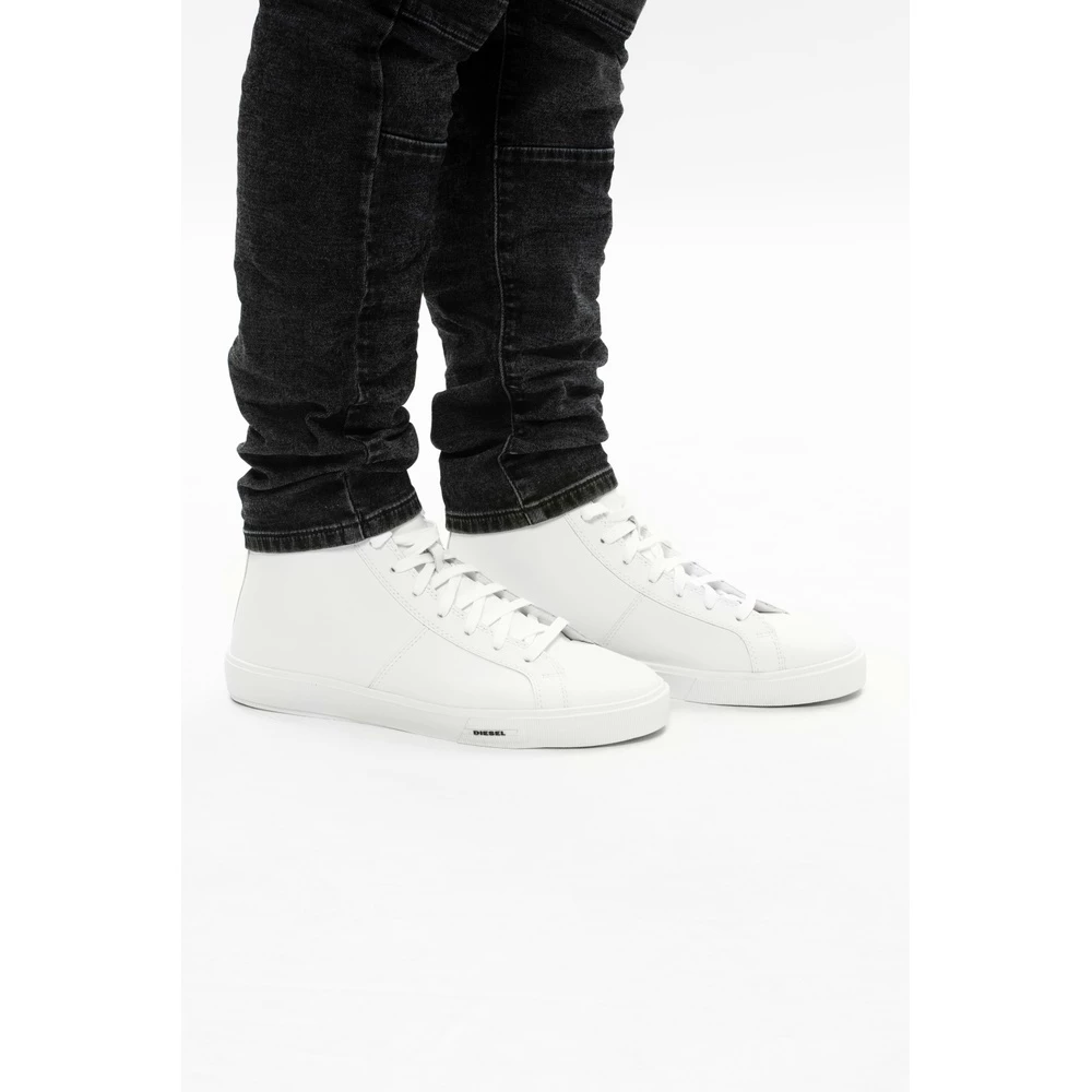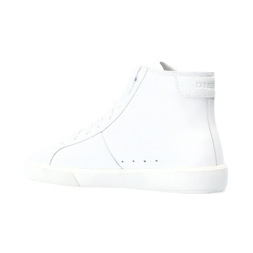 White ‘S-Mydori’ høye top joggesko fra Diesel. Denne blonderdesignet er laget av skinn, og har en preget logo bakerst og en hvit gummisåle.