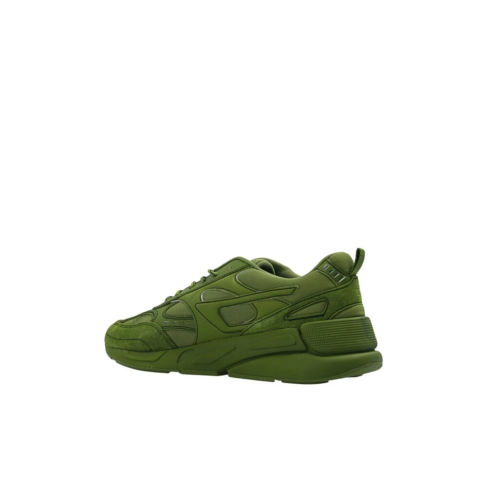 Green ‘S-serendipity’ joggesko fra Diesel. Denne snøremodellen er laget av sporty nett med faux semsket skinn og faux skinnoverlegg, og sitter på en grønn gummisåle og har en monogram lapp på siden og en rød logo-applikasjon på tungen.