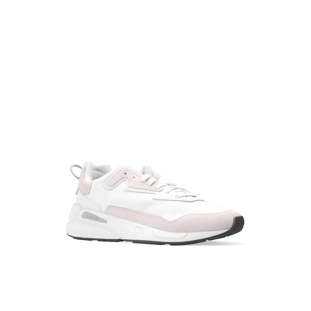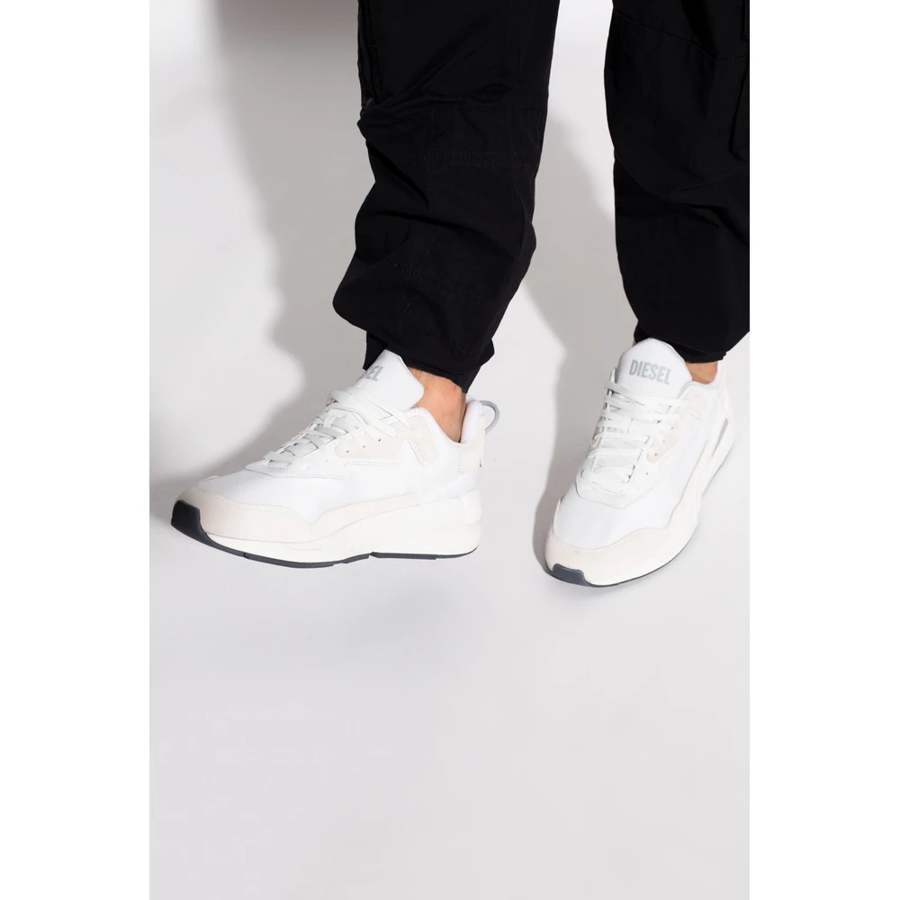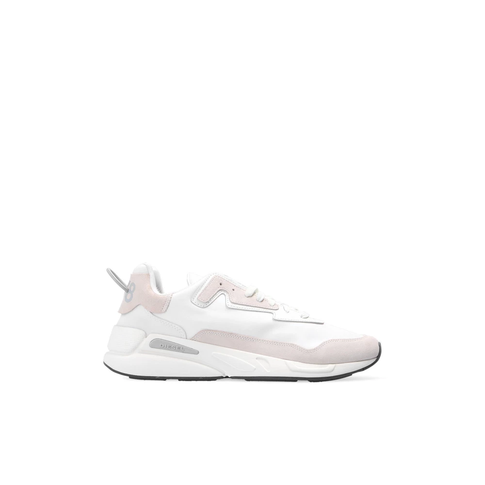 Hvite og beige ‘S-serendipity’ joggesko fra Diesel. Dette blonderparet ligger på en hvit og svart gummisåle, og har en logo trykt på tungen.