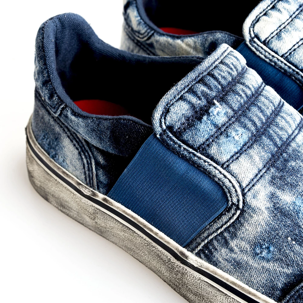 Komfortabel slip-on stil ; 8220; gå på ; 8221; Sydd elastiske sider for enkel snøring / påGummisålFremstillet av denim høykvalitets materiale utsettes for vaskeprocesMed slitasje og gnidningerPakket i en merket boks.
