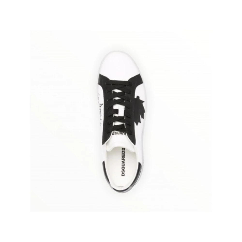 Trykk med blad D Maple, sidetrykk med slagord, fane med trykt logo, forsterkning i kontrasthælen, logoen på hælen, runde spissen, stenging foran med snøringer og flat såle.