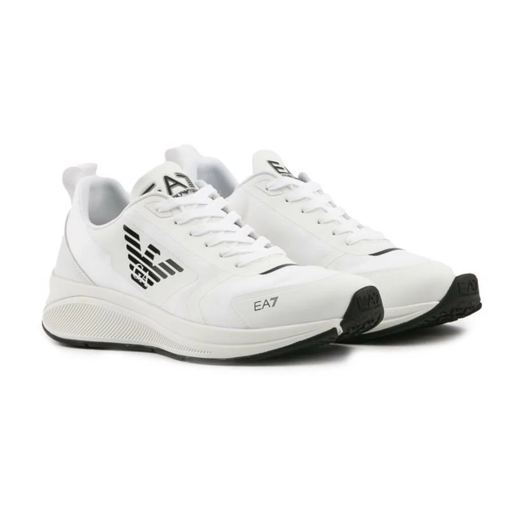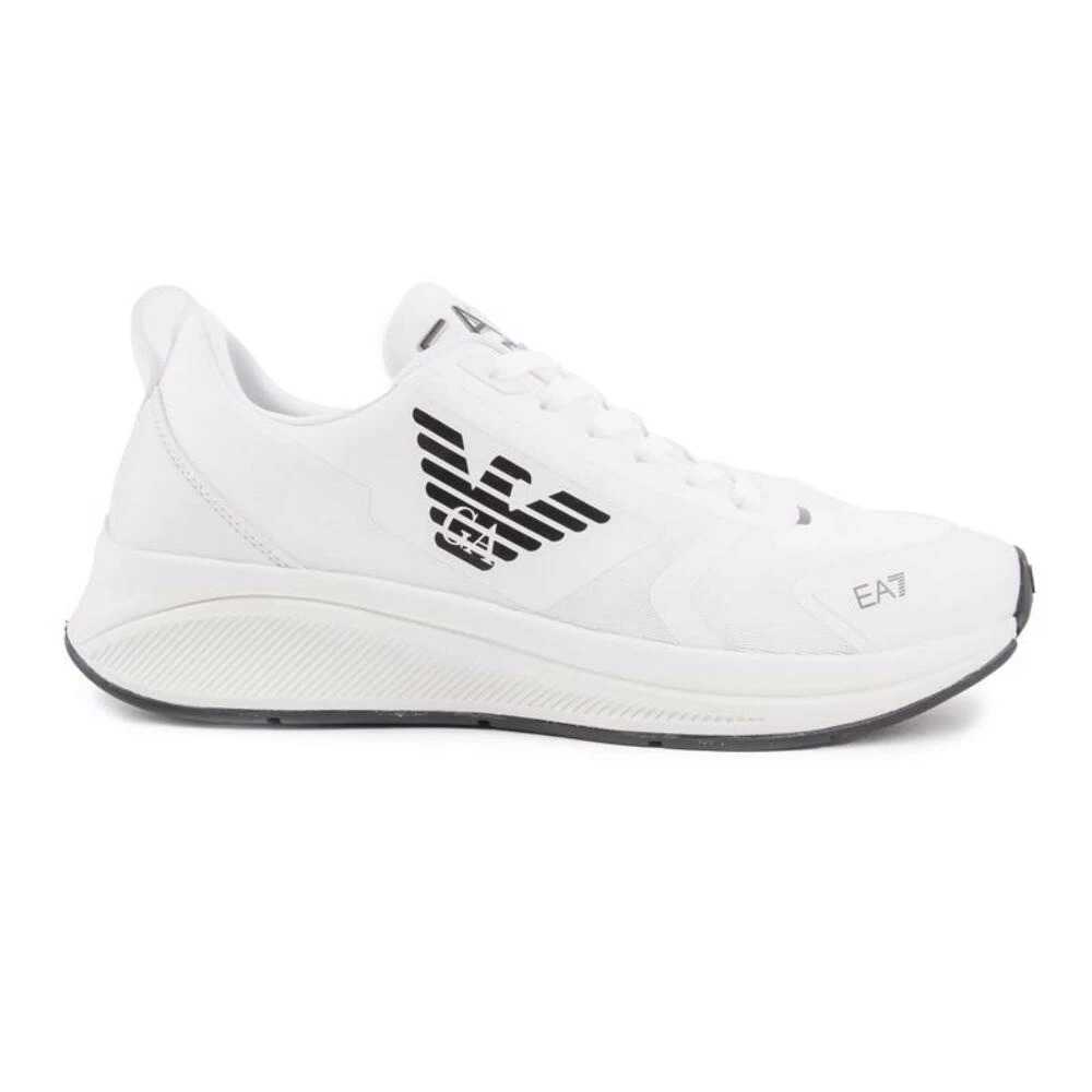 Mens White EA7 Eagle Trainers, produsert med syntetisk og tekstil og en gummisåle. Med: Graphic Quarter Branding, Eagle Sole Branding, Nylon Tongue and Heel Tab and Pused Insole.
