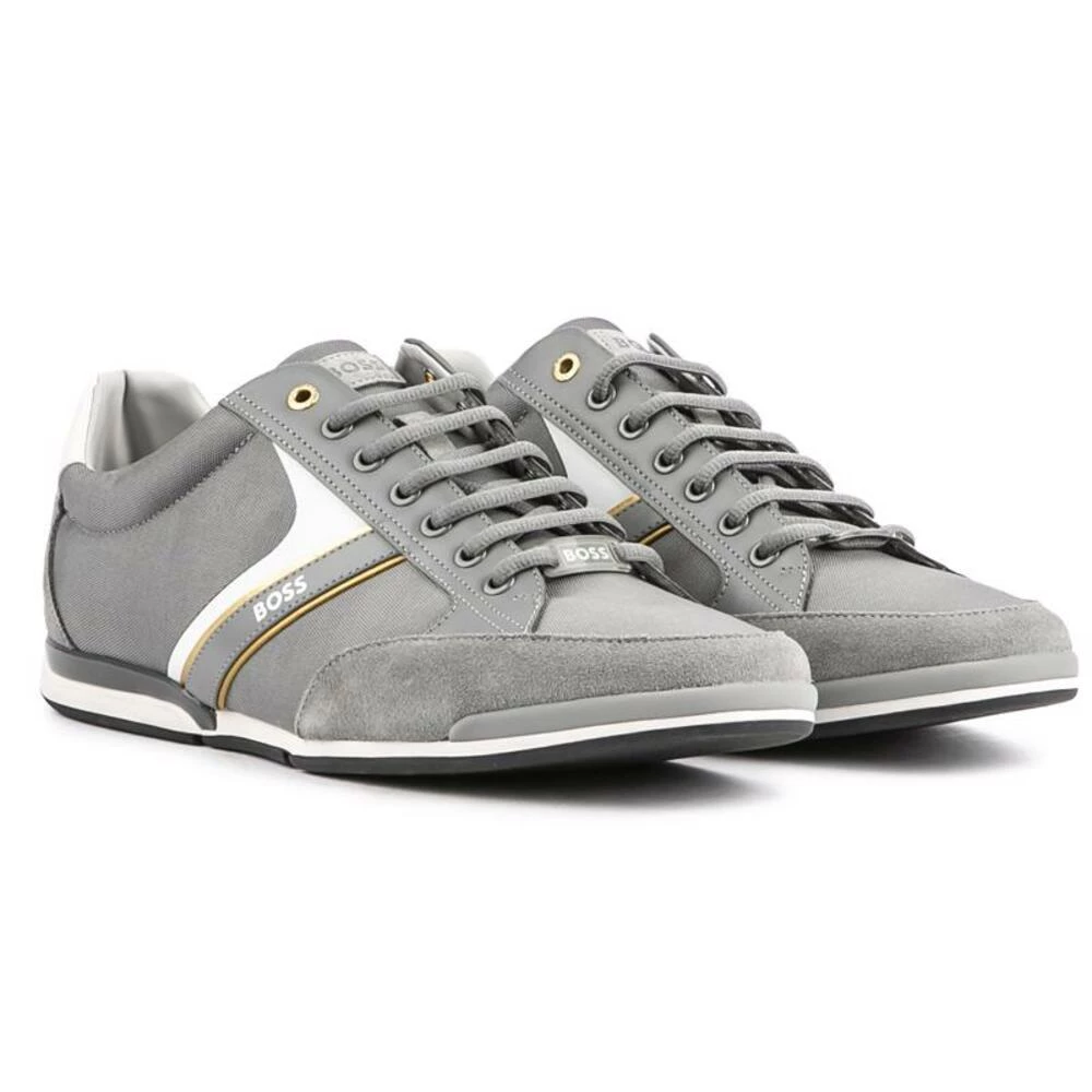 Boss Saturn Low Trainer holder moteinnsatsene høyt og er ferdig i en luksuriøs grå overdel med semsket skinn. Denne stilige, moderne trener har signaturmerkevarebygging, merket topp eyelet og har en lavprofilsål for et elegant designerutseende.