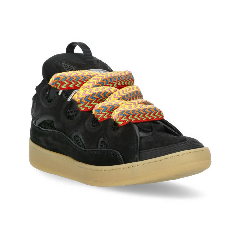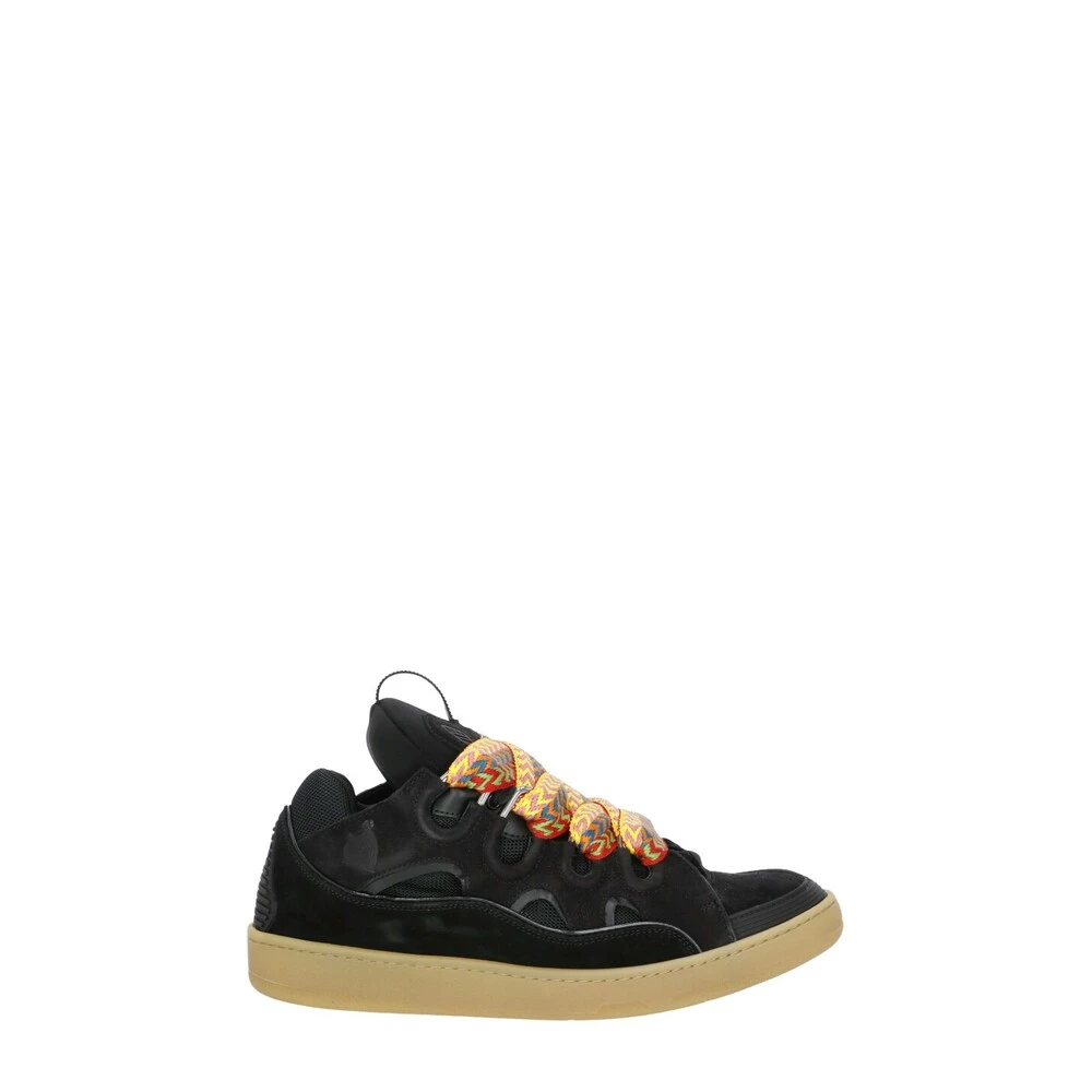 Lanvin joggesko svart- beige lanvin semsket skinn joggesko for menneskeskapte stoffinnsatser- festing med sildebeinslis- polstret tunge- side gravert logo- kontrastfôrfôr- gummi såle