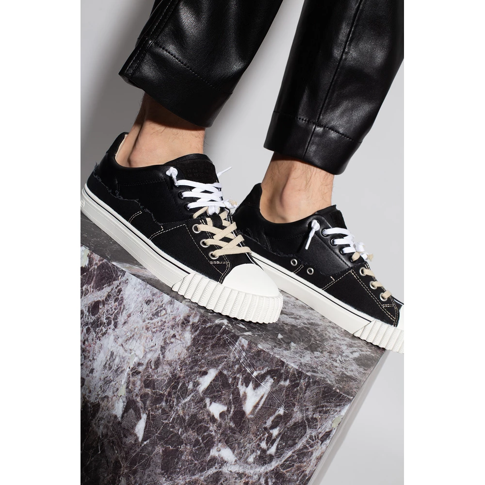 Svarte joggesko fra Maison Margiela. Dette blonderparet er ferdig med skinn, og sitter på en hvit gummisåle og viser en merket tunge lapp.