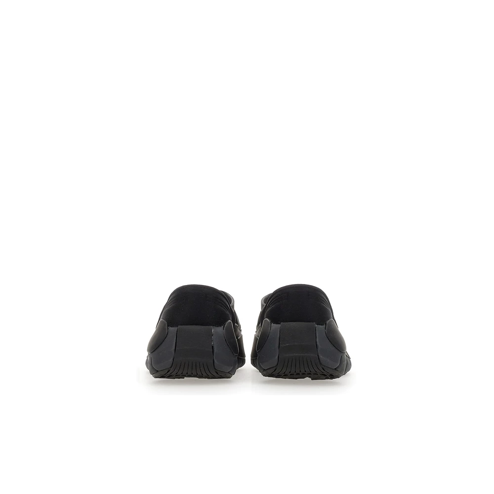 Rubber Sole: 4 cm, utskjærte detaljer ved sidene av den øvre, stoffinnsatsen på hælen, tonen på tone preget logo, skli på.