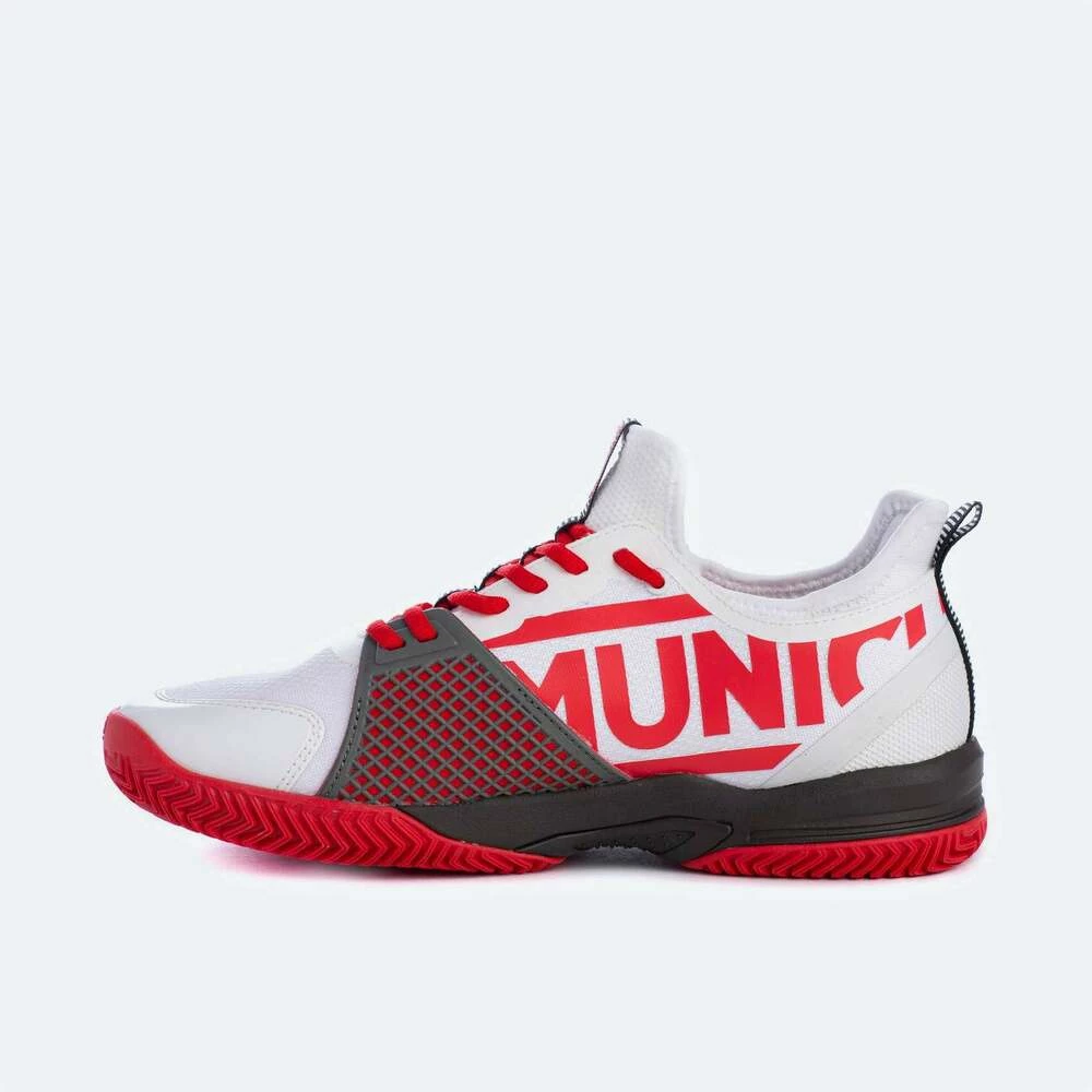 Munich Oxygen 22 Oxygen Plus har en gummiert del på innsiden for å gi større motstand mot sideveis slitasje. Denne modellen laget med en nettingbase, hvor forsterkninger brukes i de områdene som er mest utsatt for friksjon, er preget av sin letthet og komfort. Takket være interiøret laget av elastisk materiale, støttes foten perfekt under spillet. Den har sømløs teknologi og mesh stoff som gir fleksibilitet og pusteevne. De haren ny lycrasokk, sentral og bak stabilisator, favoriserer støtte og gir bedre balanse. Den har også OrthoLite innersåle, Phylon mellomsåle og gummisåle hvis nye designgir maksimal grep og bevegelse i sålen. Skoene består også av Rotox system med rotasjonsskiver, som favoriserer raske vridninger. Den har også en tåhette i gummi og en høyere sålehøyde på begge siderfor ekstra beskyttelse. Spillnivå Alle Farge Hvite – Svarte Kjønn Herresko Komposisjon Gummisåle og Mesh Vekt 350 til 370 gr.