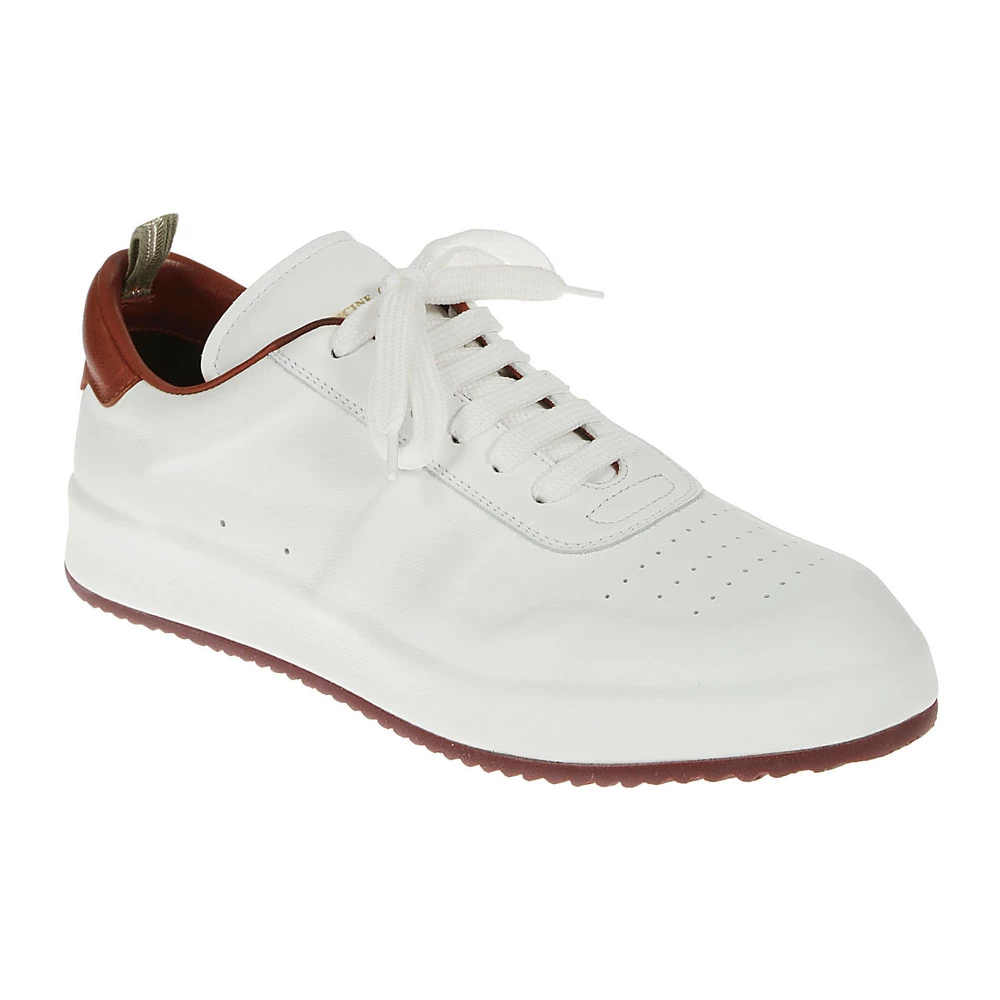 Offisin kreative hvite og røde joggesko med snøringer, transpirant og logo -detalj bak.