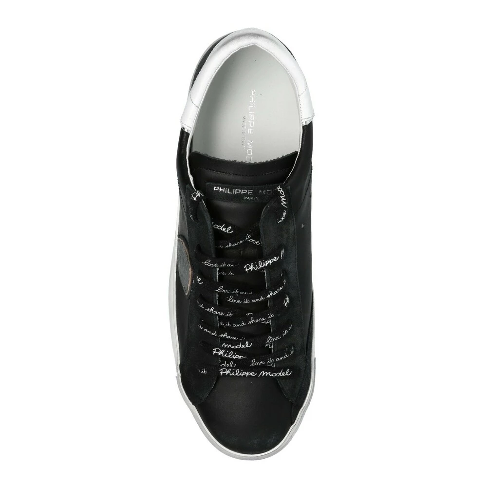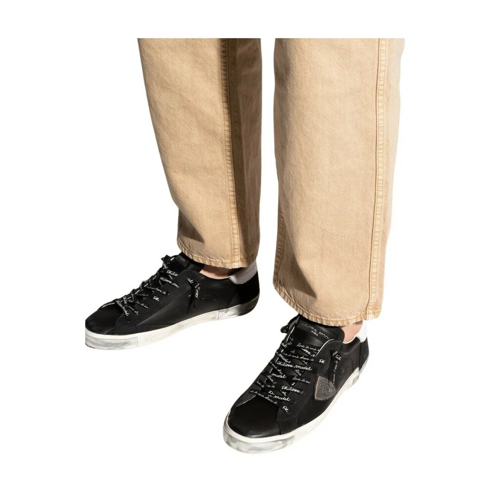 Svarte joggesko fra Philippe -modellen. Denne blonderdesignet er laget av skinn, og har en logo-lapp, kremgummi og en slitt effekt.