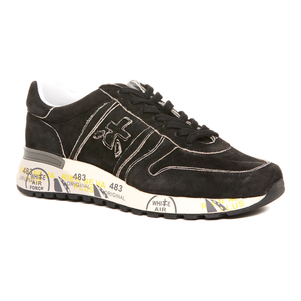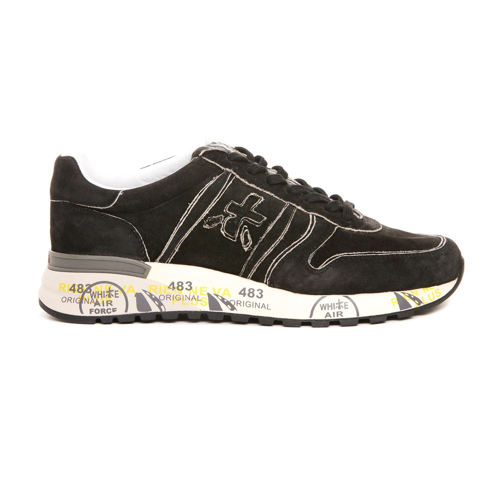 Premiata joggesko svart mann joggesko, rund tå, snor, lateral lapplogo