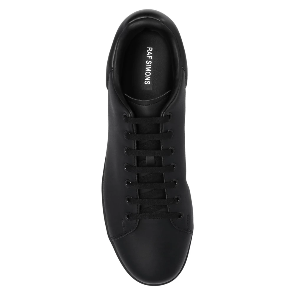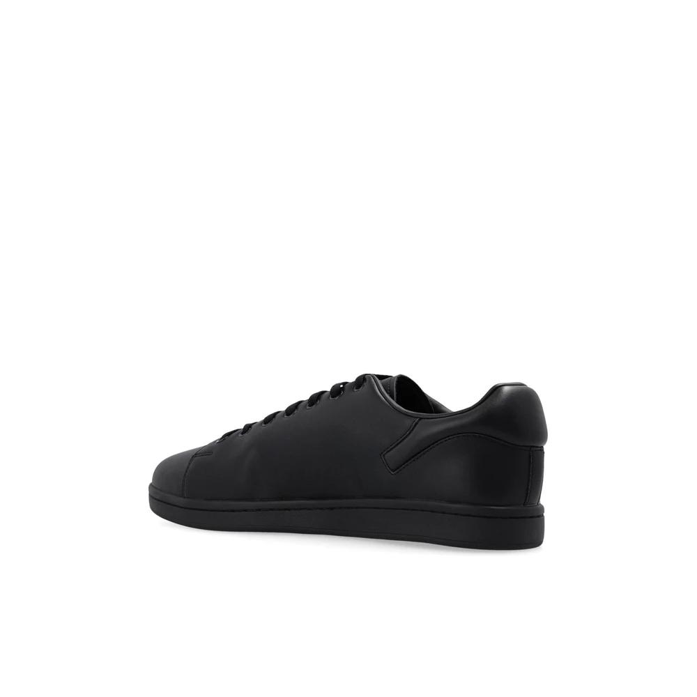 Black ‘Orion’ joggesko fra Raf Simons. Denne blondermodellen sitter på en svart gummisåle og viser en preget sølvfarget logo på siden.