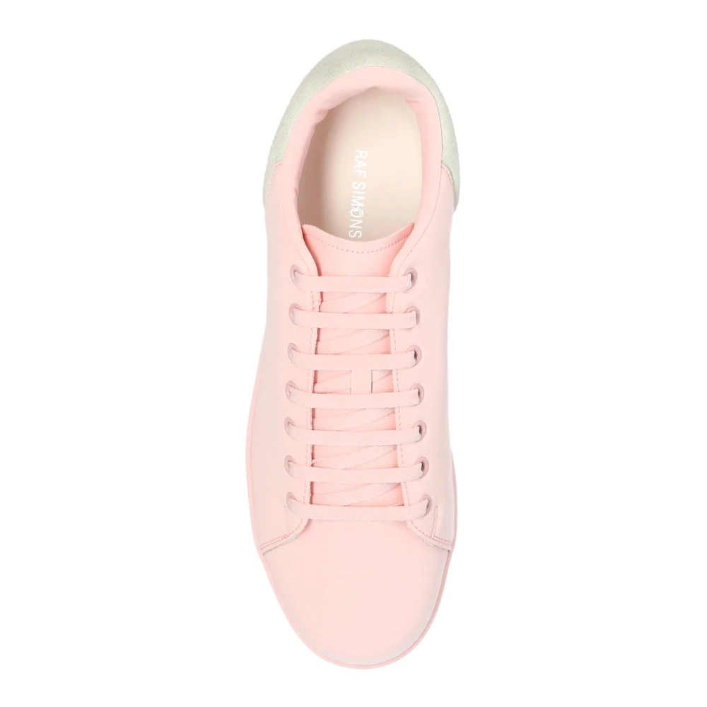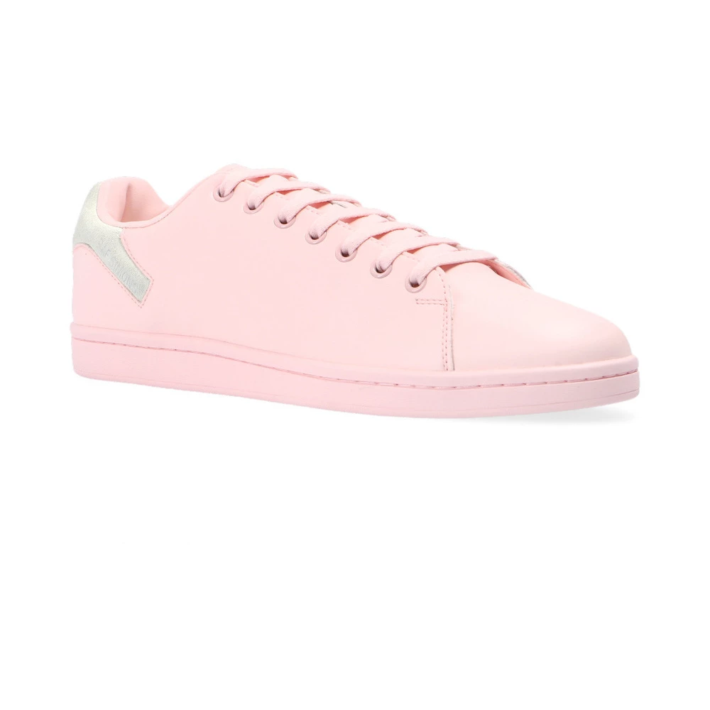 Lysrosa ‘Orion’ joggesko fra Raf Simons. Denne blondermodellen sitter på en lyserosa gummisåle, og har en faux-suede hælbenk med et sølvfarget logo-trykk.