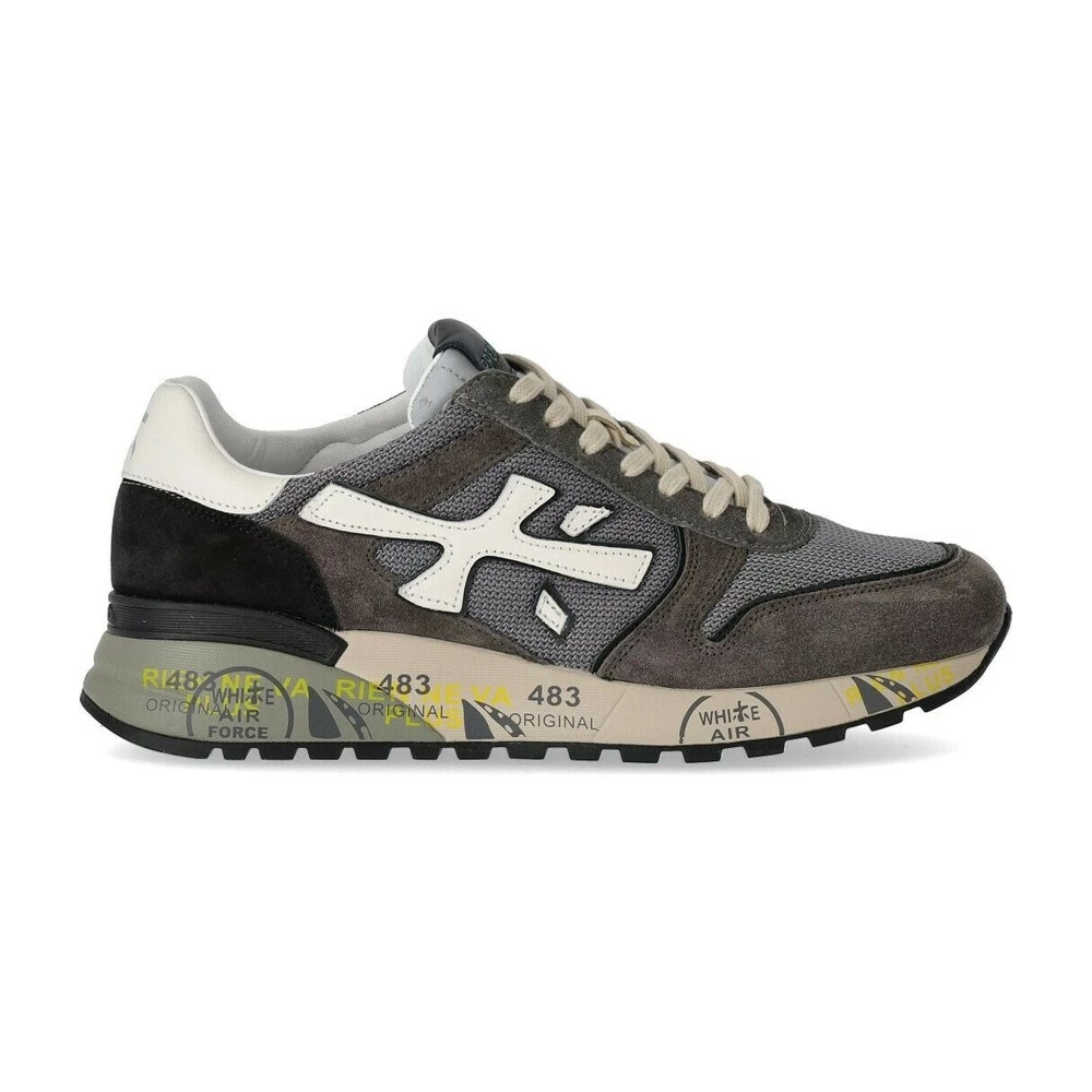 Premiata Mick 5894 sneaker laget av grått, svart og kremskinn, semsket skinn og netting. Sidemerke -logo. Rund tå og lukking med beige snøringer. Lærinteriør og flyttbar innersåle laget av lær. Gummisåle. Eneste høyde 4,5 cm. Vanlig passform.