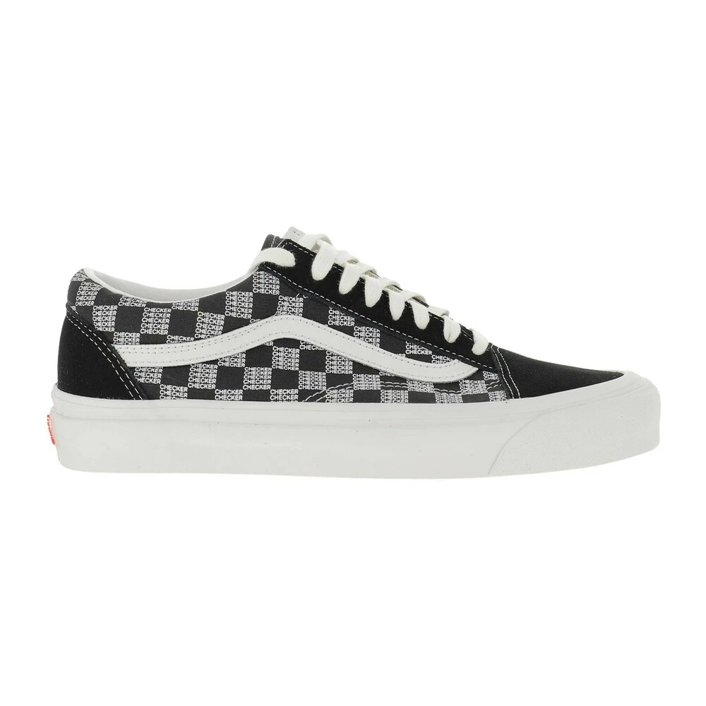 Joggesko laget av stoff og lær blonder foran lukkingen Ikonisk sidestripe All-over Checker Lettering Motif Logo Detalj på hæl rundt tå vaffel såle svart, hvit laget i Filippinene komposisjon: 100% skinn, 100% stoffs joggesko laget av stoff og lær blonder -oppsetningens lukking Ikonisk sidestripe All-over Checker Lettering Motif Logo Detalj på hæl rundt tå vaffel såle svart, hvit laget i Filippinene komposisjon: 100% skinn, 100% stoff