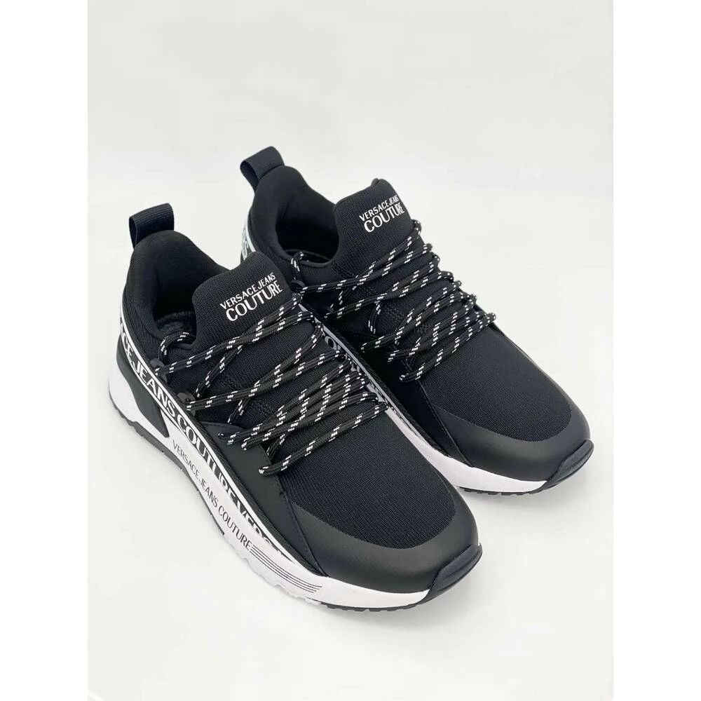 Versace Jeans Couture fleksible joggesko med svart og hvit snøredetaljer. Merkelogo rundt skoen.