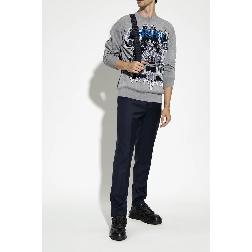Svarte ‘Odissea’ joggesko fra Versace. Denne modellen er laget av skinn med en slip-on silhuett, og sitter på en hvit gummisåle og har en perforert tåhette og en logo-lapp og gummi medusa-applikasjon på fronten.