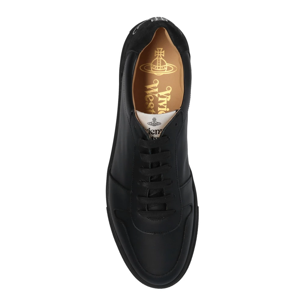 Black ‘Apollo’ joggesko fra Vivienne Westwood. Dette blonderparet er laget av skinn, og har en svart gummisåle og en svart semsket hæl-fane trykt med en hvit logo.